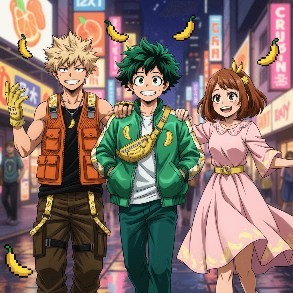 Creating outfits inspired by My Hero Academia allows fans to embrace their favorite characters while infusing personal style into everyday fashion choices—especially when pairing them with quirky items like nano-bananas!